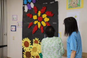 8月は壁紙制作で 『向日葵と花火』 を利用者様と作成しました(^^♪