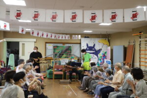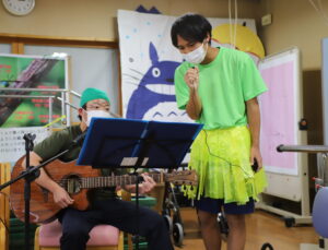 夏祭りの締めくくりには、職員によるギター演奏と歌で盛り上がりました。